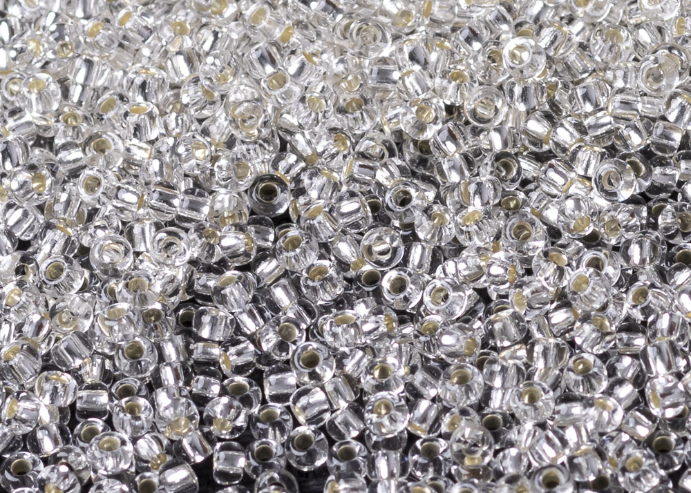 Бисер Чехия круглый 08/0 50 г 57430 прозрачный желто-зеленый с серебряным прокрасом