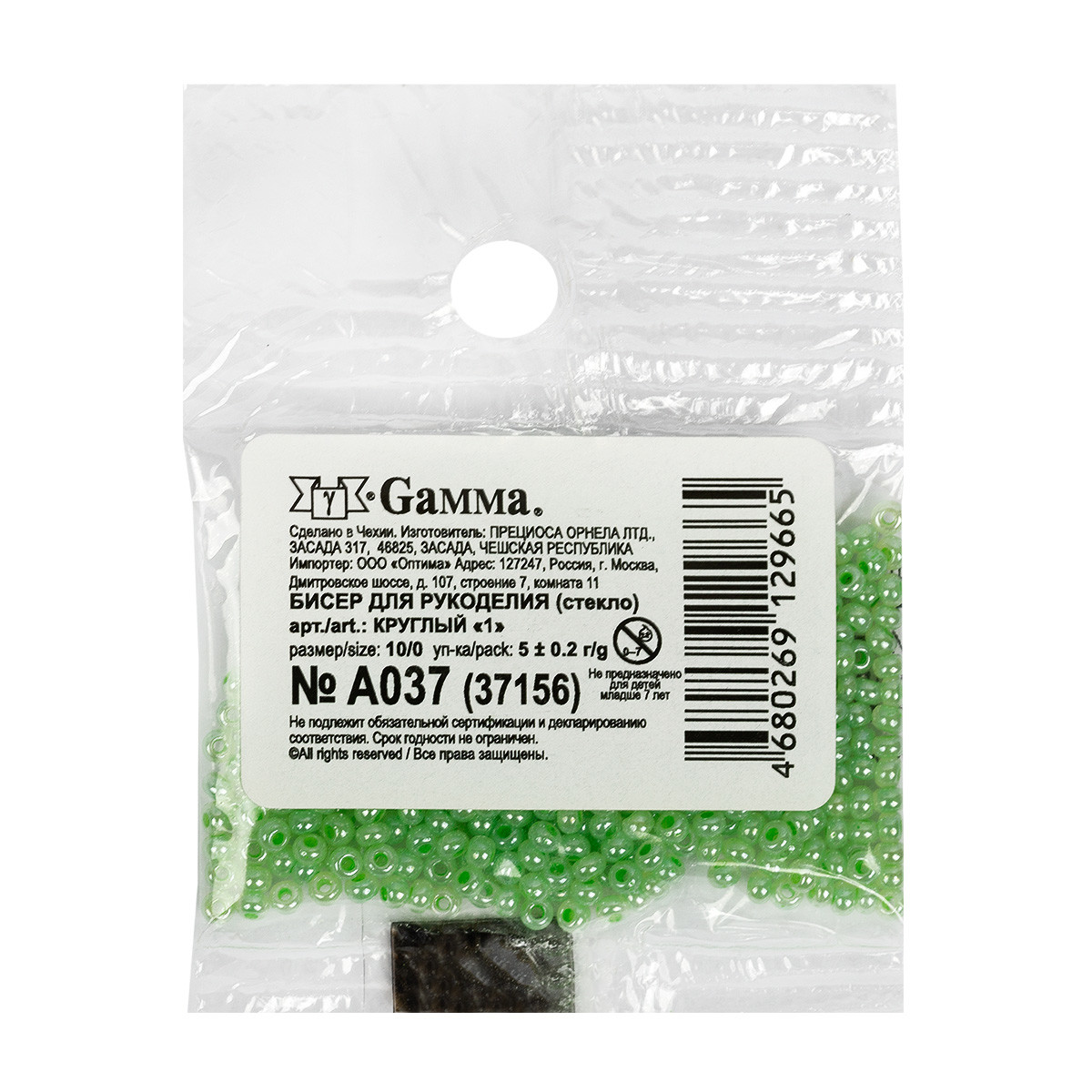 Бисер Чехия Preciosa круглый, фасовка 5 грамм. Первый сорт бисера. Фасовка Gamma