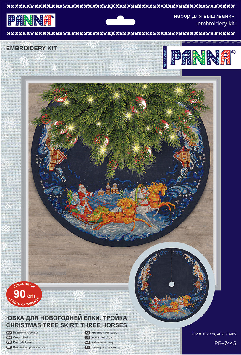 Юбка для новогодней елки стильно декорирует основание, словно окутывая его снегом, и создает в доме атмосферу зимнего праздника. В набор для вышивания PANNA входит: аппертированная канва Gamma Aida 14, хлопчатобумажные нитки мулине Gamma, игла для вышивания Gamma, косая бейка, цветная схема, инструкция по вышиванию и сборке изделия. Юбка для новогодней елки стильно декорирует основание, словно окутывая его снегом, и создает в доме атмосферу зимнего праздника. Сообщить о неточности в описании